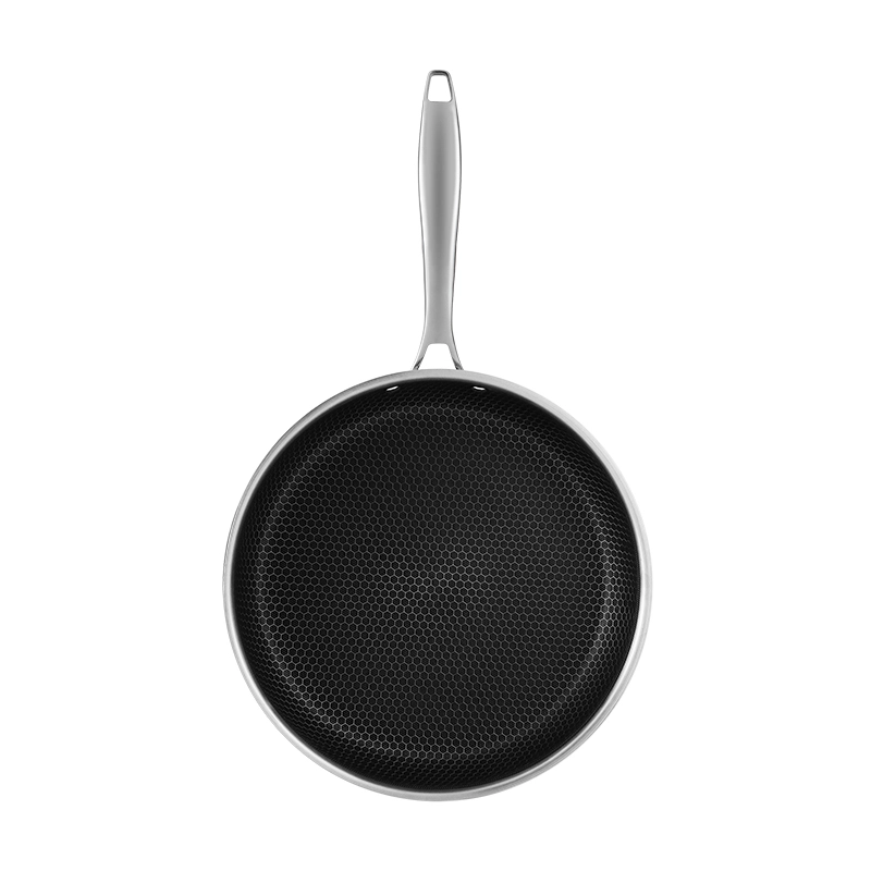 As a leading OEM/ODM manufacturer, Goldensea offers two high-performance interior finishes for our tri-ply frying pan series to help you capture diverse market segments. Choose our Professional Mirror Polish for a classic, chemical-free cooking surface preferred by gourmet chefs for high-heat searing and deglazing. Alternatively, opt for our Laser-Etched Honeycomb Non-Stick Coating, which combines the durability of stainless steel with the convenience of a scratch-resistant, easy-release surface. Both options utilize our premium full-body tri-ply construction (SS304 + Aluminum + SS430), allowing your brand to offer tailored solutions for both professional culinary sectors and home-chef retail markets.