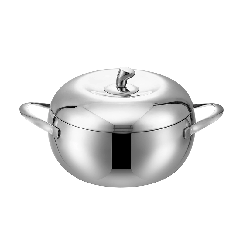 Featuring a distinctive “Apple” (or Belly) profile, this cookware combines aesthetic appeal with functional thermodynamics, promoting better heat circulation inside the pot. The premium mirror-polished exterior enhances shelf presence for retailers, offering a high-end look that appeals to luxury cookware distributors and brand buyers.